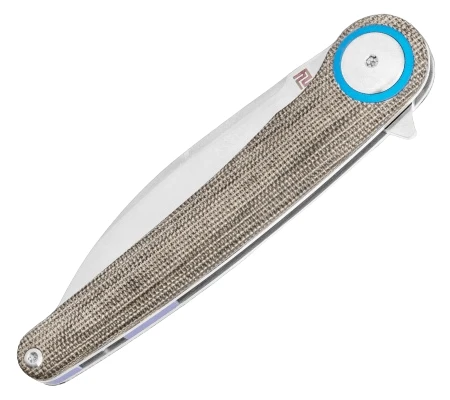Die Klinge aus CJRB und dem patentierten AR-RPM9 Stahl von Artisan nutzt die besten Eigenschaften von D2 und rostfreiem Stahl, um einen preiswerten Stahl zu produzieren, der wirklich lange hält. Die Klinge lässt sich mit einem Flipper öffnen und wird durch eine Linerlock-Sicherung in der offenen Position gehalten. Der Griff ist aus Mikrofaser mit feiner Textur gefertigt. Das messer ist mit einem clip für das tragen in der tasche.