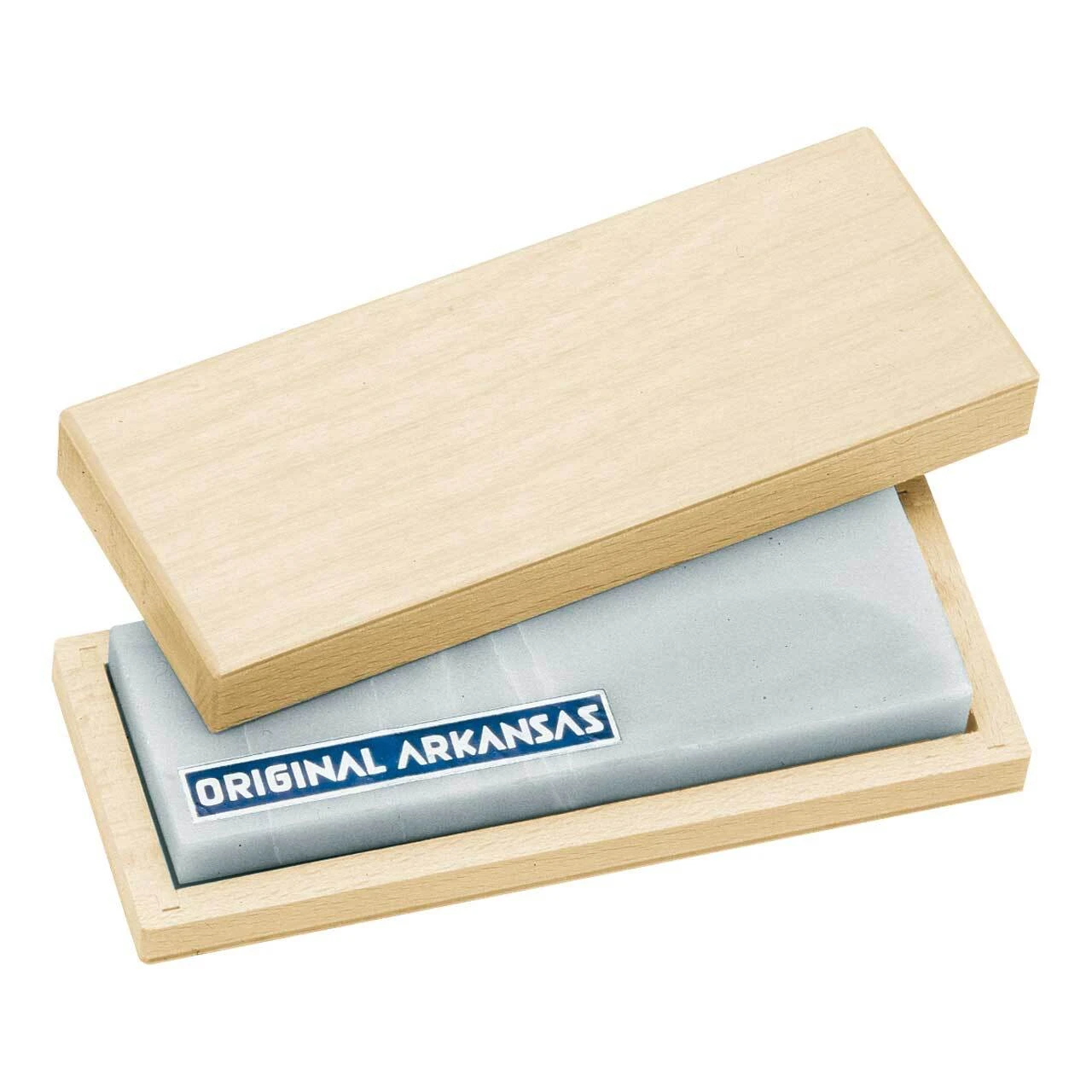 Echter Arkansas-Stein wird mit Öl verwendet. Kommt in einer Holzkiste. Abmessungen: 20 x 5 cm