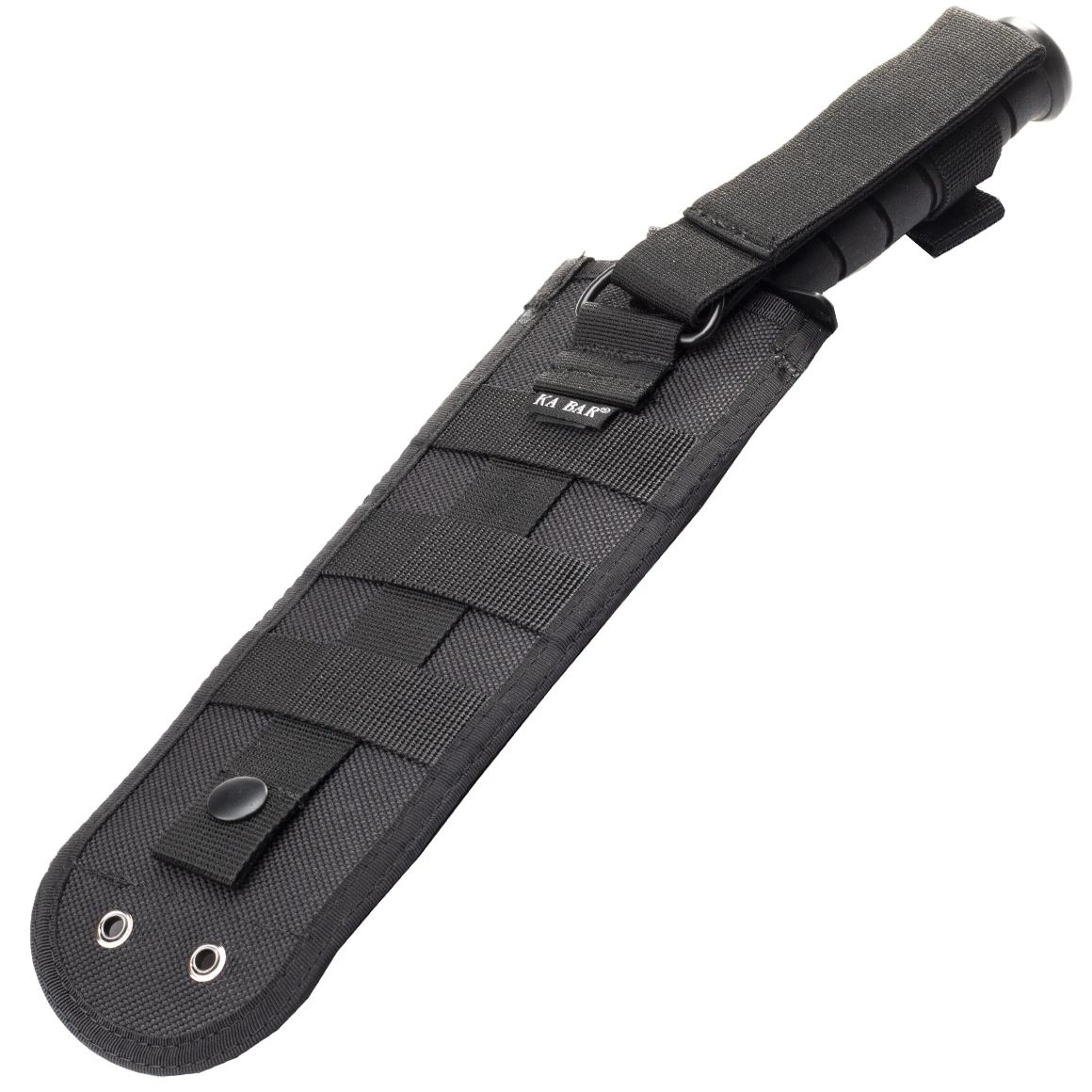 Dieses Modell basiert auf der Form seines älteren Bruders Kukri Machete. Sie ist etwa 80 % so groß wie die größere Version der KA-BAR 1249 Kukri Machete, bietet aber fast die gleiche Leistung. Es hat ein kleineres Profil, was die Handhabung und Handhabung erleichtert.