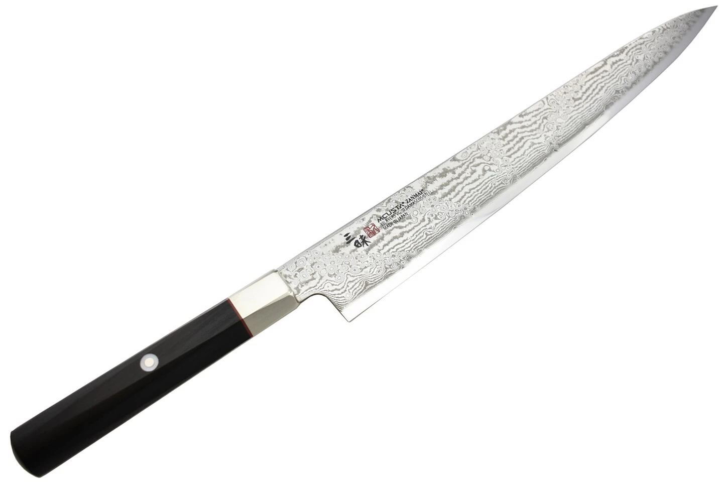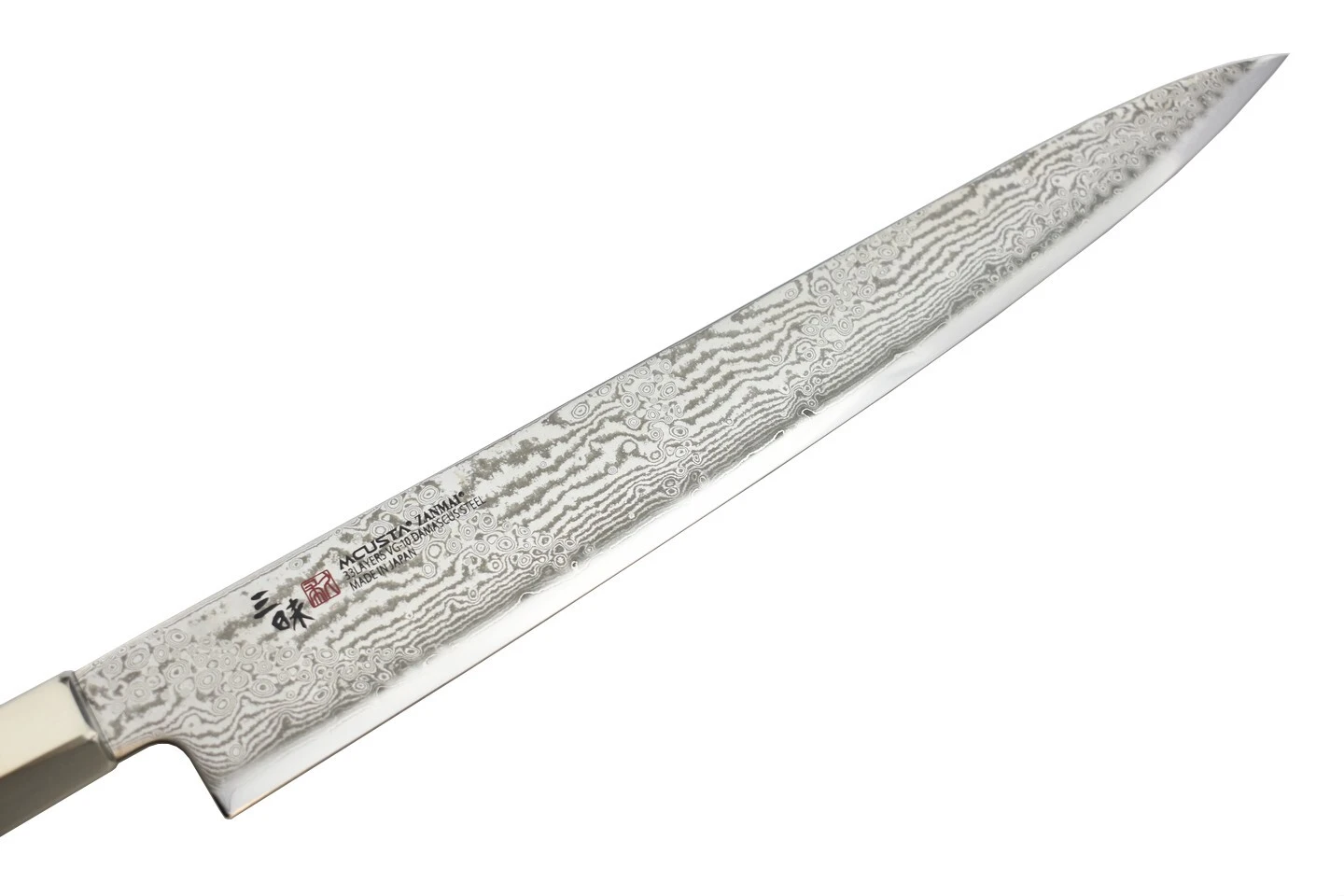 Getreu seinem Ruf, bietet Mcusta ein atemberaubendes Niveau der Handwerkskunst an allen Fronten. Es bringt eine Serie von eigenen Luxus-Küchenmessern mit Damastklingen.
