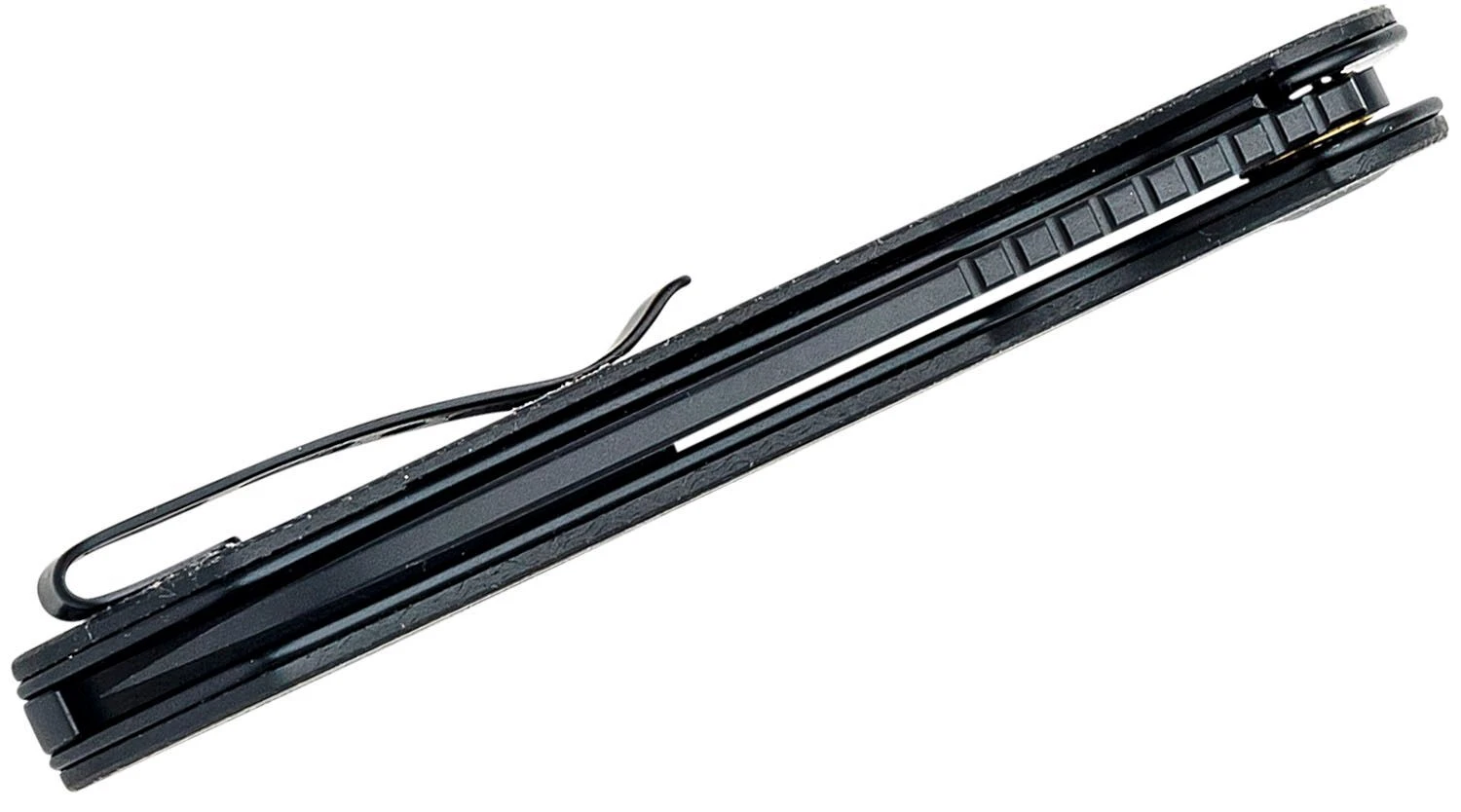 Die Klinge aus rostfreiem Stahl 9Cr18MoV lässt sich mit einem Flipper öffnen und wird durch einen Linerlock-Verschluss in der offenen Position gehalten. Der Griff ist aus strapazierfähigem Micarta gefertigt. Das Messer ist mit einem Clip zum Tragen in einer Tasche ausgestattet.