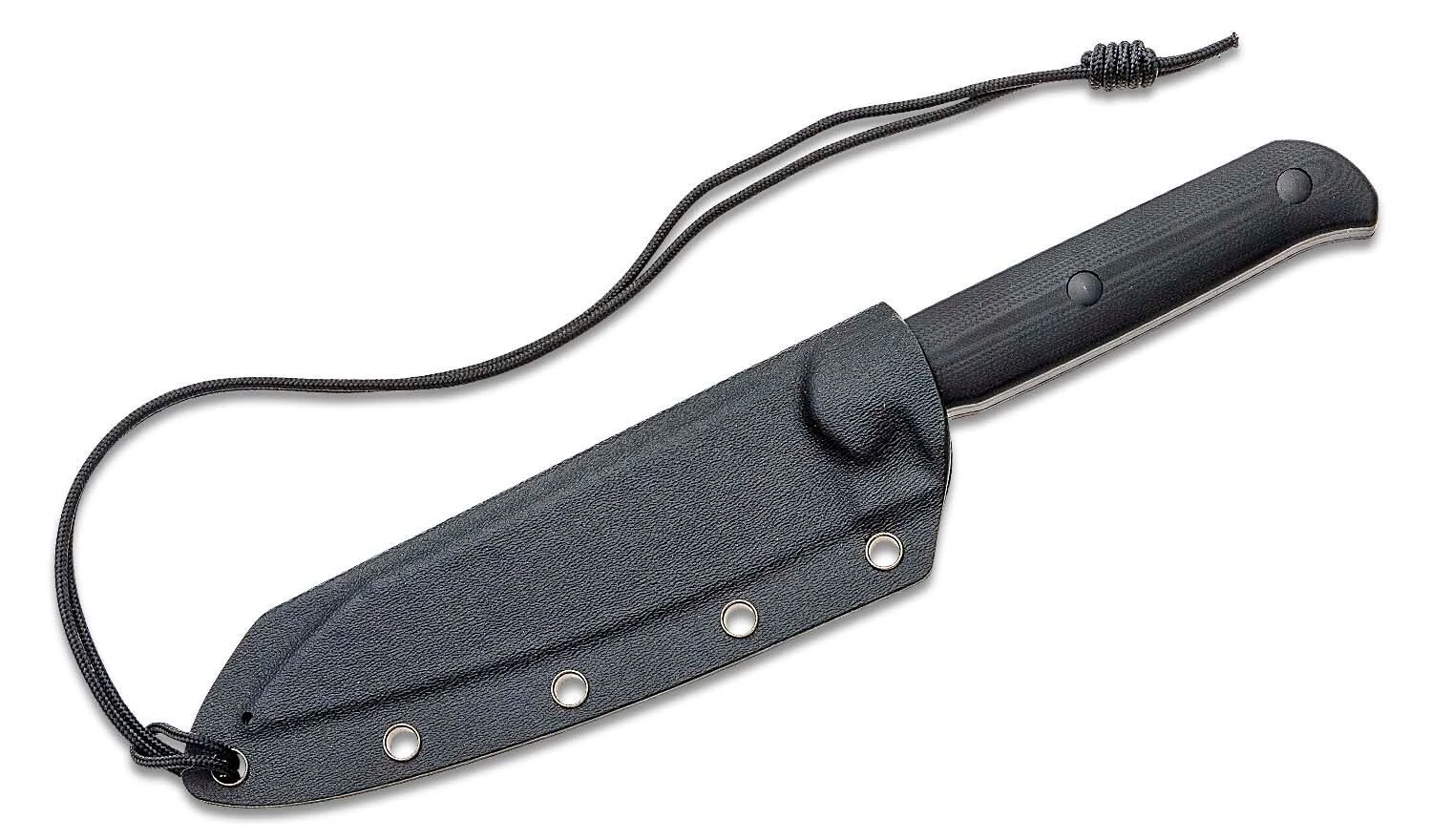 Das Messer wird mit einer Kydexscheide und einem Lanyard für den Transport geliefert.