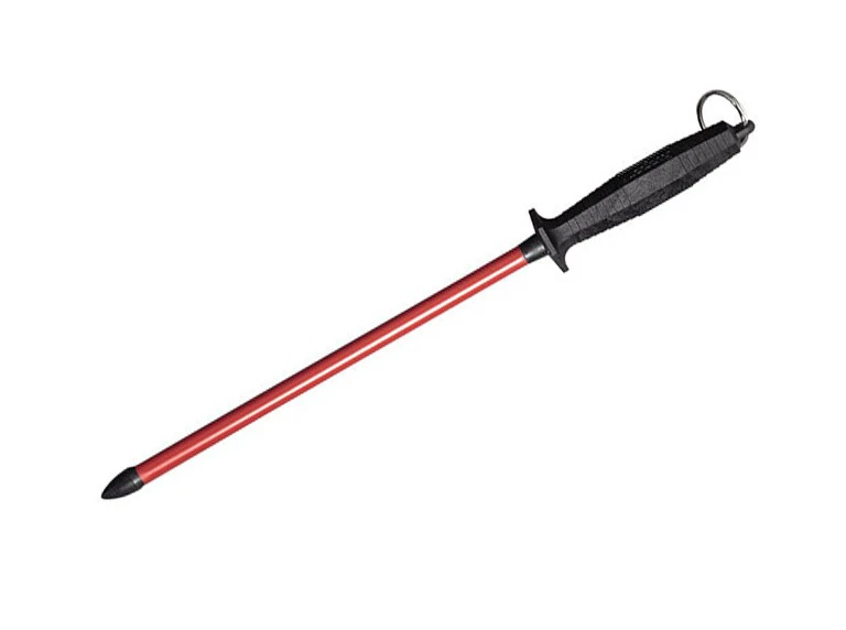 Langlebiger Stahl aus synthetischem Rubin ist 20-mal härter als gehärteter Stahl. Messerschärfstahl kann trocken oder nass verwendet werden. Nach Gebrauch einfach mit einem Schwamm reinigen. Das zum Schleifen vorgesehene Teil ist 28 cm lang.