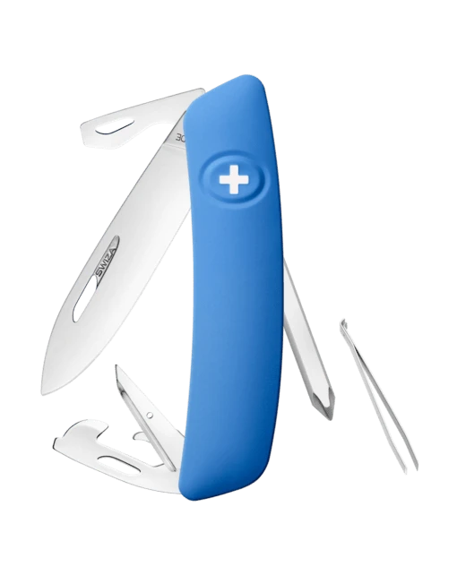 Das Schweizer Taschenmesser Swiza D04 in Blau ist ein multifunktionales Werkzeug mit einem Polymergriff aus Gummitextur. Der Griff besteht aus hartem Edelstahl 440. Geeignet für den täglichen Gebrauch.