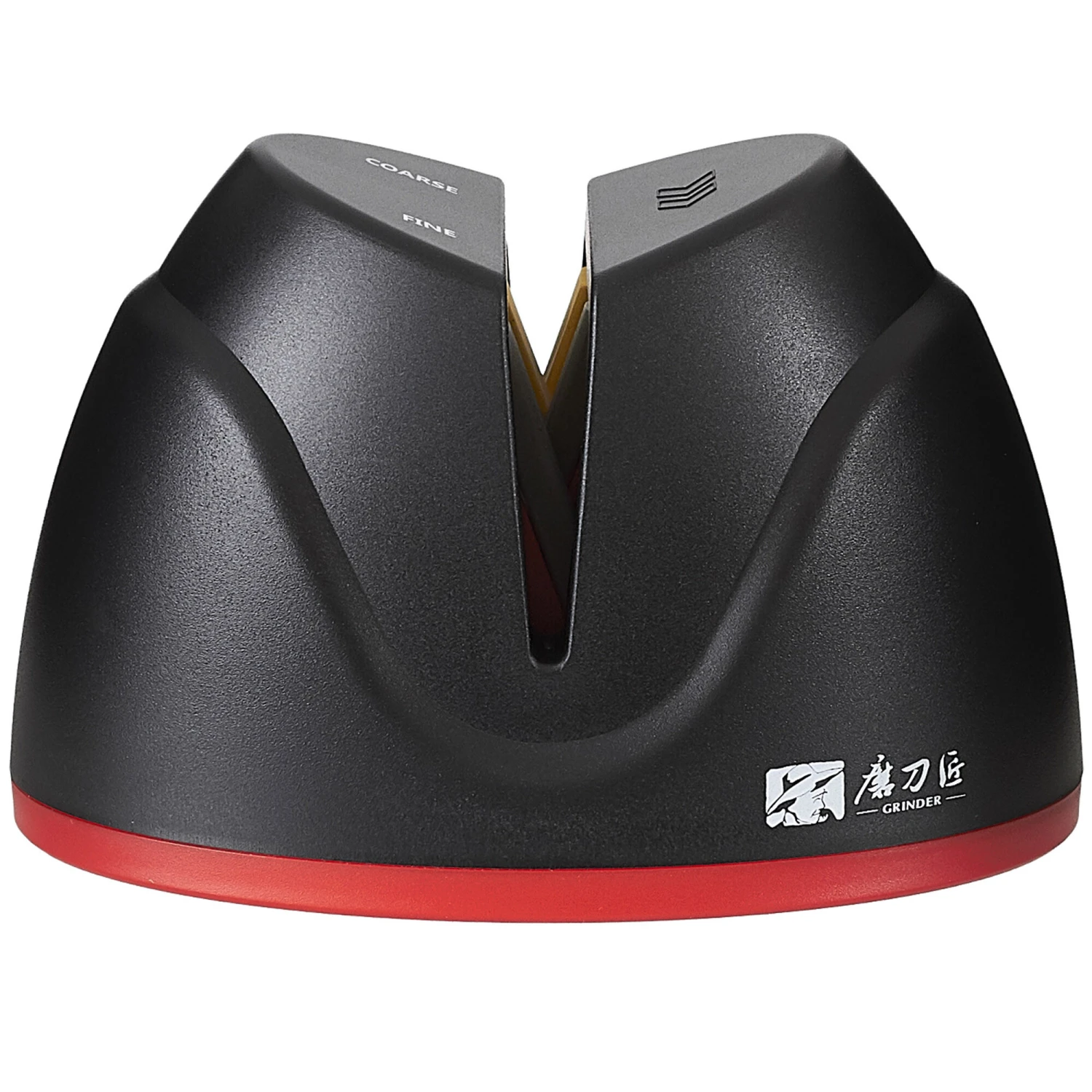 Multifunktionaler Küchenmesserschärfer. Schärft Ihr Küchenmesser in zwei Schritten mit zwei verschiedenen Körnungen. Kompakt genug, um leicht auf Ihrer Küchenzeile Platz zu finden.