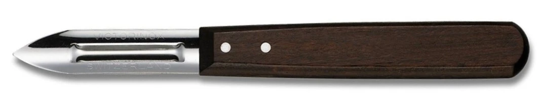 Victorinox Schäler für beide Hände geeignet für Kartoffeln, Obst oder Gemüse, mit einer hochwertigen Edelstahlklinge und einem Griff aus lackiertem dunklem Rosenholz. Nicht spülmaschinenfest.