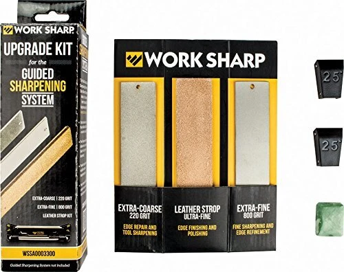 Das Upgrade-Kit für das Richtfokussystem enthält zwei zusätzliche Diamantplatten (extra grobe Körnung 220 und extra feine Körnung 800) sowie einen Satz Lederformteile mit 25 ° Führungswinkeln und einer 0,5-Mikron-Chromoxid-Honmasse. Die Diamantplatten und die Lederphase sind 1,25 „x 6“ groß und nur für das geführte Fokussiersystem ausgelegt.