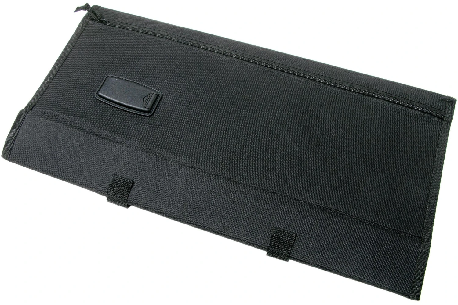 Die Messertasche kann mit zwei Schnallen sicher verschlossen werden. Außerdem kann der Innenraum mit einem Reißverschluss verschlossen werden, damit die Messer an ihrem Platz bleiben. Diese Messertasche hat sowohl einen Griff als auch einen Schultergurt für optimalen Tragekomfort. Außerdem ist er mit einem Schloss versehen, um neugierige (oder eifersüchtige) Menschen von Ihren Messern fernzuhalten.