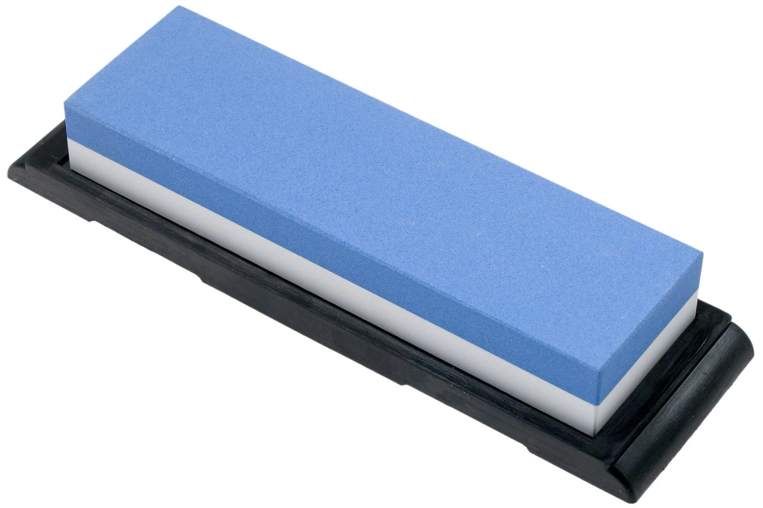 Wüsthof Keramik-Messerschärfstein mit zwei Seiten mit unterschiedlichen Körnungen J 3000/8000 – fein (Vorschliff, beseitigt kleine Unebenheiten in der Klinge) und extra fein für ein glattes Finish. Nur mit Wasser verwenden, Öl zerstört den Stein. In Blau und Weiß.